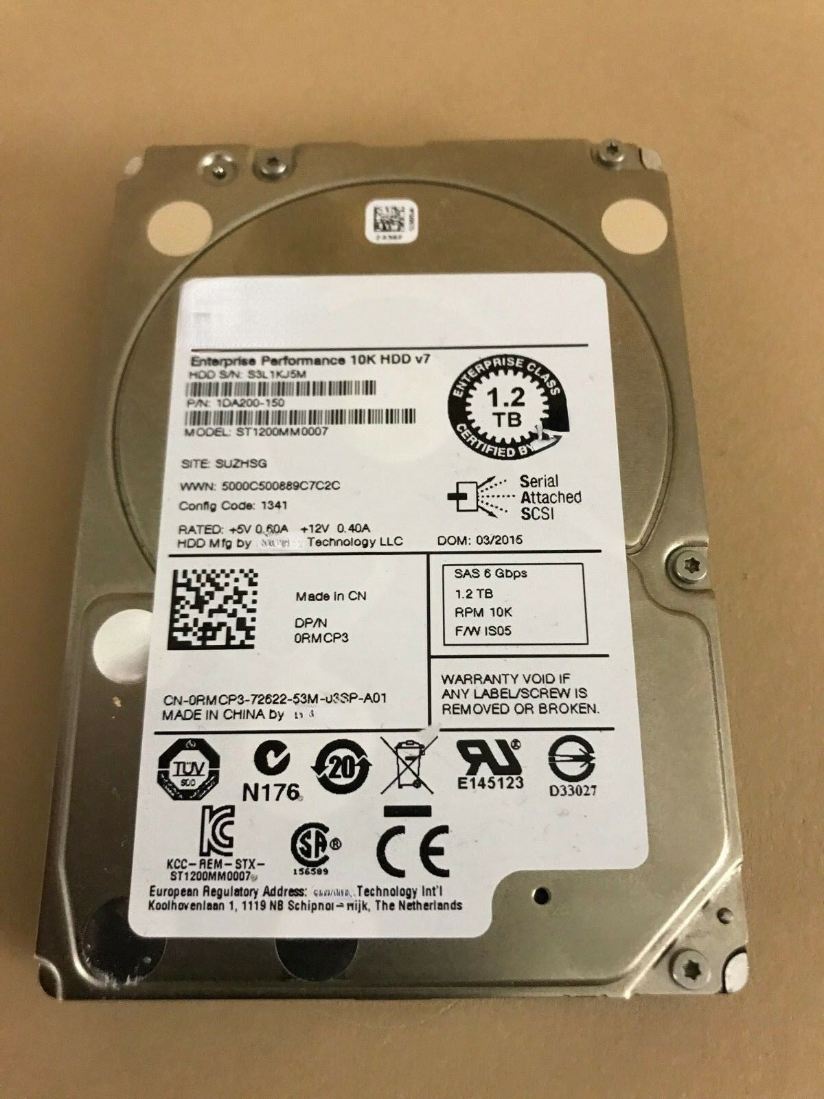 DELL R620 R710 R910 Hard Drive 1.2T 10K 2.5 6GB SAS ST1200MM0007