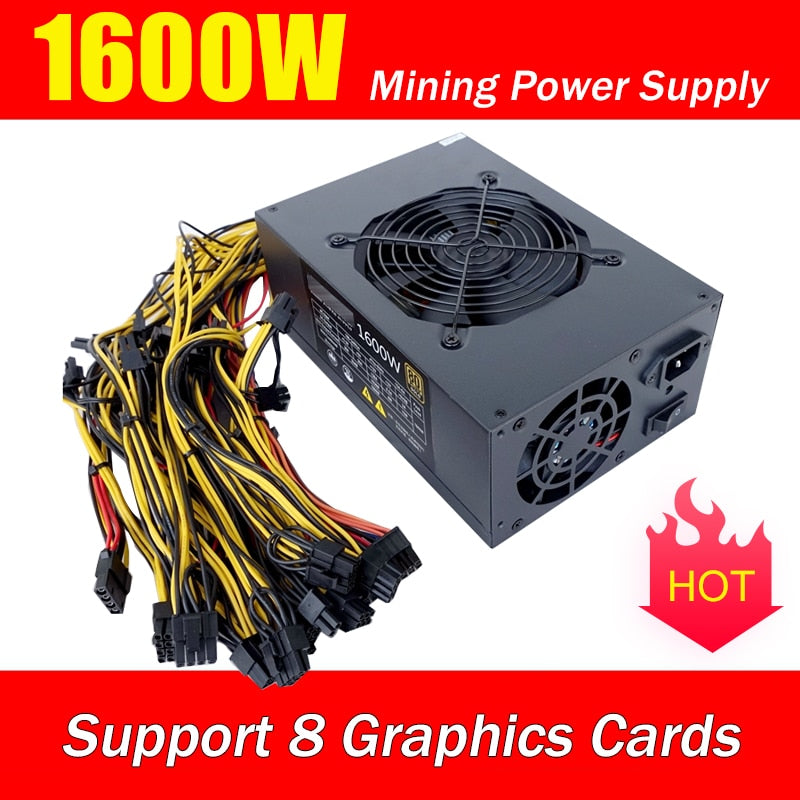 Gold 1600W Mining Power Supply, Support 8 Graphics Cards Rendering 80 PLUS Gold Certification Full Tested Working