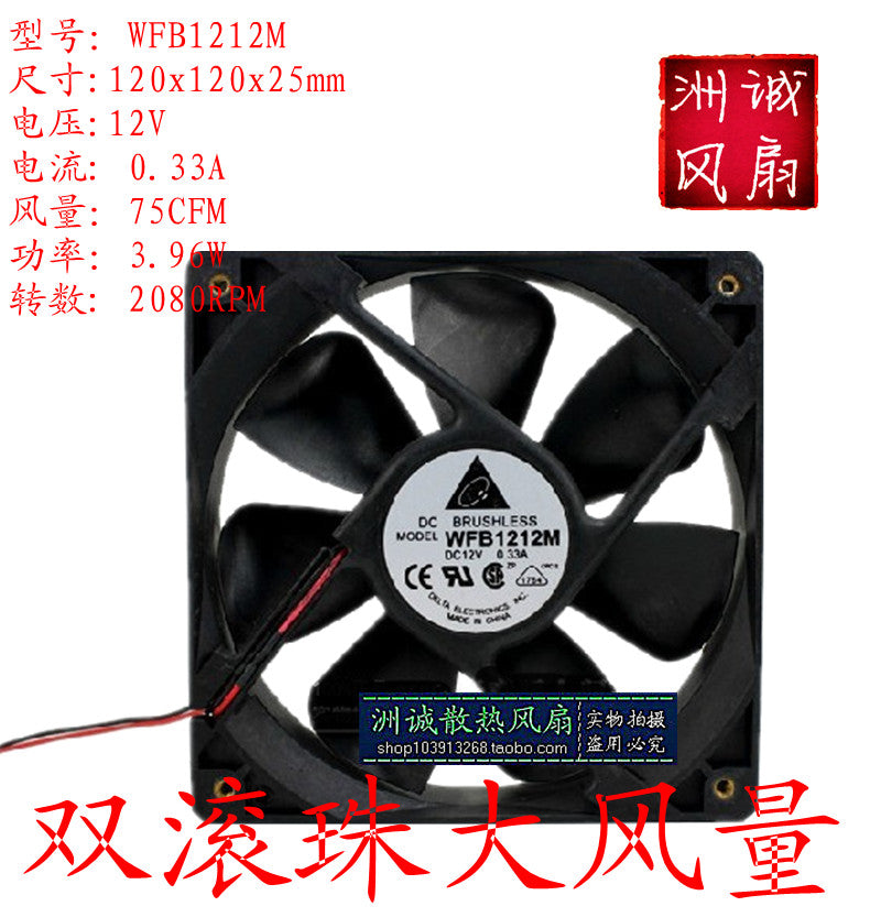 Delta 12cm 12025 wfb1212m 0.33a dual ball cooling fan