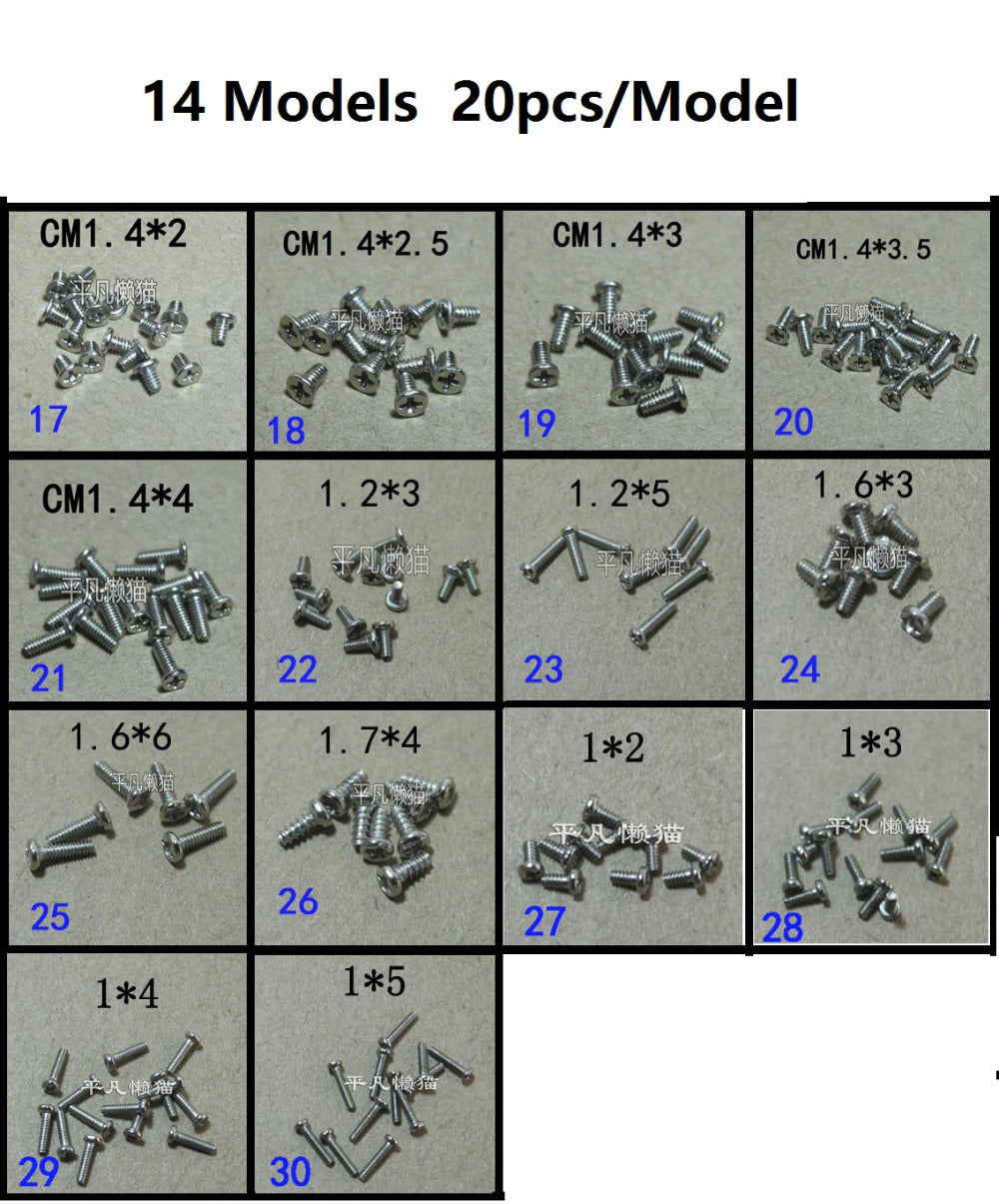 Micro screw Mobile phone camera flat head screws small screws 14 Models 280pcs/lot